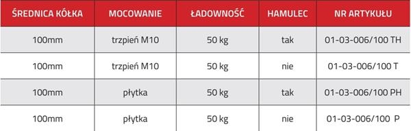 Kółko skrętne Φ100mm, ozdobne, montaż trzpień M10, bez hamulca, kolor szary